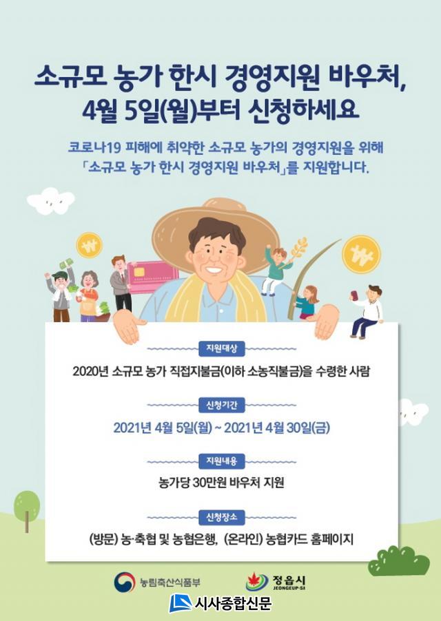 Á¤À¾½Ã´Â 5ÀÏ ¼Ò±Ô¸ð ³ó°¡ÀÇ ¾ÈÁ¤ÀûÀÎ °æ¿µÁö¿øÀ» À§ÇØ ³ó°¡´ç 30¸¸¿ø »ó´çÀÇ ¹Ù¿ìó¸¦ Áö±ÞÇÑ´Ù°í ¹àÇû´Ù.
