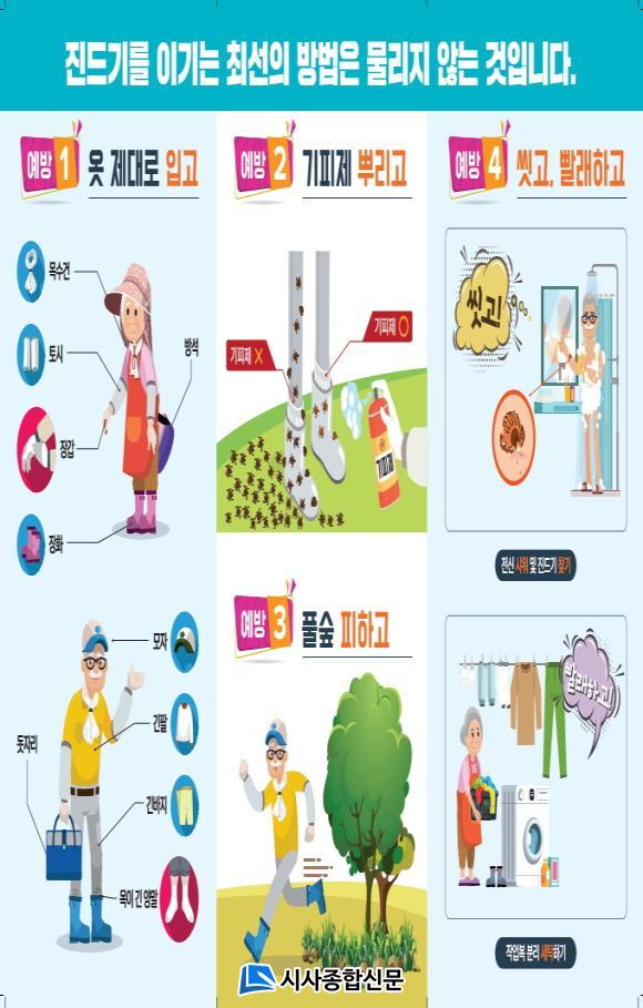 ÇÑÆí, À¯ºÀ¿Á Àå¼ö±ºº¸°ÇÀÇ·á¿øÀåÀº ¡°Áøµå±â ¸Å°³°¨¿°º´ ¿¹¹æÀ» À§Çؼ ¾ß¿ÜȰµ¿ ½Ã ±ä ¿ÊÀ» Âø¿ëÇÏ¿© ÇǺΠ³ëÃâ ÃÖ¼ÒÈÇϱâ, Ç®¹ç¿¡¼ µ¾ÀÚ¸® »ç¿ëÇϱâ, ¾ß¿ÜȰµ¿ Á÷ÈÄ ¿ÊÀ» ¼¼Å¹Çϰí, ¸Ó¸®Ä«¶ô, ±Í ÁÖº¯, ÆÈ ¾Æ·¡ µî Áøµå±â°¡ ¸ö¿¡ ºÙ¾î ÀÖÁö ¾ÊÀºÁö È®ÀÎÇϱ⸦ °Á¶¡±Çϸç, ¡°¿¹¹æ¼öÄ¢ È«º¸ µî °¨¿°º´ ¿¹¹æ¿¡ ÃÖ¼±À» ´ÙÇϰڴ١±°í ¹àÇû´Ù.