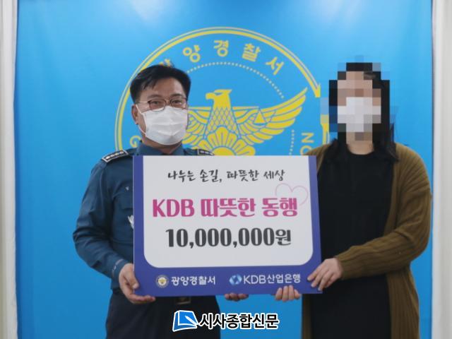 [½Ã»çÁ¾ÇսŹ® = Àå¹Î±Ô ±âÀÚ] ±¤¾ç°æÂû¼(¼Àå ±èÁßÈ£)´Â Áö³ 7ÀÏ ±¤¾ç°æÂû¼¿¡¼ °¡Á¤Æø·Â »ç°Ç ÇÇÇØÀÚ¿¡°Ô¡®KDB µû¶æÇÑ µ¿Ç࡯ÈÄ¿ø±Ý 1õ¸¸¿øÀ» Àü´ÞÇß´Ù.