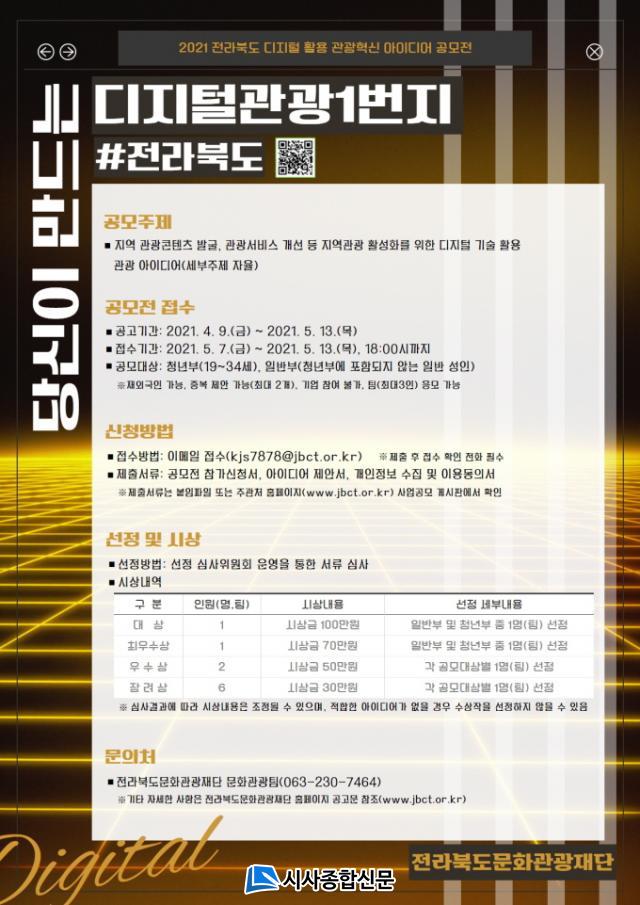 ¡®Àü¶óºÏµµ µðÁöÅРȰ¿ë °ü±¤Çõ½Å ¾ÆÀ̵ð¾î °ø¸ð¡¯´Â °ü±¤ üÇè ÇÁ·Î±×·¥ °³¹ß, °ü±¤ ÆíÀÇ Á¦°ø µîÀ» ÁÖÁ¦·Î µðÁöÅÐ ±â¼úÀ» Ȱ¿ë‧Á¢¸ñÇÑ ´Ù¾çÇÑ °ü±¤ Çõ½Å ¾ÆÀ̵ð¾î¸¦ ¹ß±¼Çϱâ À§ÇÑ »ç¾÷ÀÌ´Ù.