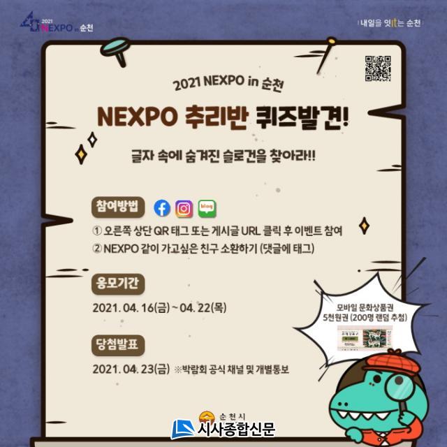 ¡®NEXPO Ã߸®¹Ý ÄûÁî¹ß°ß! ±ÛÀÚ ¼Ó¿¡ ¼û°ÜÁø ½½·Î°ÇÀ» ã¾Æ¶ó!¡¯¶ó´Â ÁÖÁ¦·Î ÃßÁøµÇ´Â À̹ø À̺¥Æ®´Â ¹Ú¶÷ȸ °ø½Ä SNS ä³Î Áß ÆäÀ̽ººÏ°ú ÀνºÅ¸±×·¥À» ÅëÇØ ÁøÇàµÈ´Ù.