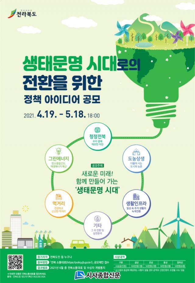 ÇÑÆí, °½Â±¸ Àü¶óºÏµµ ±âȹÁ¶Á¤½ÇÀåÀº ¡°»õ·Î¿î ¹Ì·¡ÀÎ ¡®»ýŹ®¸í½Ã´ë·ÎÀÇ Àüȯ¡¯À» À§ÇÑ Á¤Ã¥ ¾ÆÀ̵ð¾î °ø¸ð¿¡ µµÁ¤ÀÇ ÁÖÀÎÀÎ µµ¹ÎµéÀÌ Âü½ÅÇÏ°í ½ÇÈ¿¼º ÀÖ´Â ¾ÆÀ̵ð¾î¸¦ Àû±Ø Á¦¾ÈÇØ ÁÖ±æ ¹Ù¶õ´Ù¡± ¶ó°í ¸»Çß´Ù.