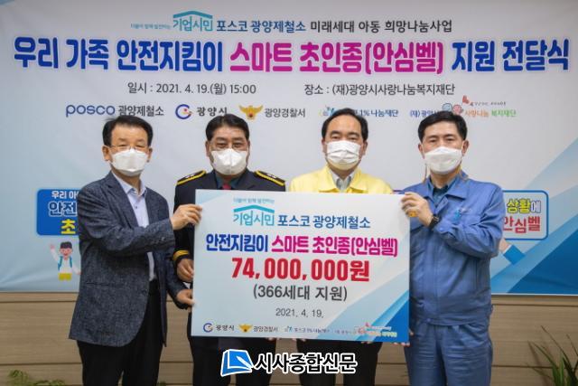 ±¤¾çÁ¦Ã¶¼Ò´Â ±¤¾ç°æÂû¼ÀÇ Á¦¾ÈÀ¸·Î ÇØ´ç »ç¾÷À» Áö¿øÇϱâ·Î °áÁ¤Çϰí, Æ÷½ºÄÚ1%³ª´®Àç´Ü ±âŹ±Ý 7õ 4¹é¸¸¿øÀ» Ȱ¿ëÇØ ±¤¾ç½Ã »ç¶û³ª´®º¹ÁöÀç´Ü¿¡ Àü´ÞÇß´Ù. ÀÌÈÄ ±¤¾ç½Ãû¿¡¼ ½ÅûÀÚ¸¦ ¸ðÁýÇÏ°í ´ë»óÀÚ¸¦ ¼±¹ßÇØ ¿À´Â 30ÀϱîÁö ¼³Ä¡¸¦ ¿Ï·áÇÒ ¿¹Á¤ÀÌ´Ù.