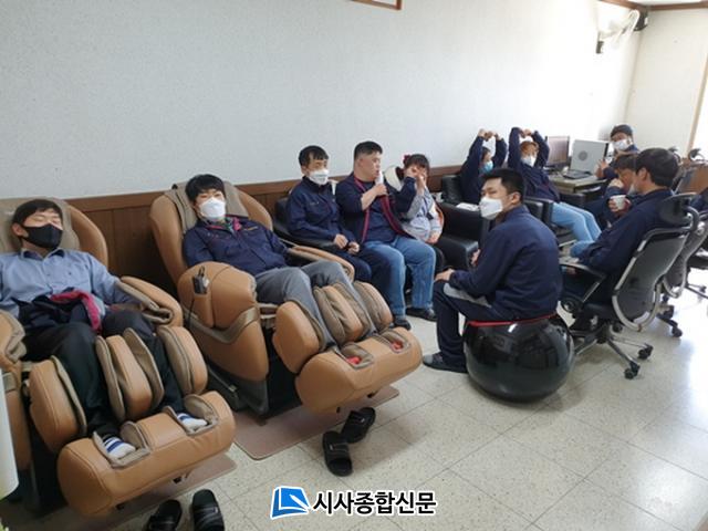 ±èÁ¦½ÃÀå¾ÖÀκ¸È£ÀÛ¾÷Àå¿¡¼´Â ÁßÁõ±Ù·ÎÀå¾ÖÀÎ 30¸íÀÌ ÇØ³»¸® ¹°Æ¼½´(6Á¾)¸¦ »ý»êÇÏ´Â °¡¿îµ¥ ÀÛ¾÷¿¡¼ ¿À´Â ÇÇ·Î¿Í ±Ù°ñ°ÝÁ¦ ÁúȯÀ» ¿°·ÁÇϰí ÀÖ´Â ¹Ù, Áö³ÇØ Á¦Á¶µ¿ ÁõÃàÀ¸·Î »ý±ä º»µ¿ °Ç¹° 10ÆòÀÇ °ø°£¿¡ ±Ù·ÎÀå¾ÖÀÎÀ» À§ÇÑ ÈÞ°Ô½ÇÀ» Á¶¼ºÇϰí Àü½Å¾È¸¶±â, Çڵ𸶻çÁö±â, ¹ß¸¶»çÁö±â, ¾î±ú¾È¸¶±â µî ÈÞ°Ô¹°Ç° 12Á¡°ú ÄÄÇ»ÅÍ 2´ëµîÀ» ±¸ºñÇÏ¿´´Ù. À̳¯ º°µµ·Î °Ç°°ËÁøºñ¸¦ Ã¥Á¤ÇÏ¿© º¸È£ÀÛ¾÷ÀåÀÇ 30¸í Àüü ±Ù·ÎÀÚ¸¦ ´ë»óÀ¸·Î °Ç°°ËÁøµµ ÁøÇàÇÏ¿´´Ù.