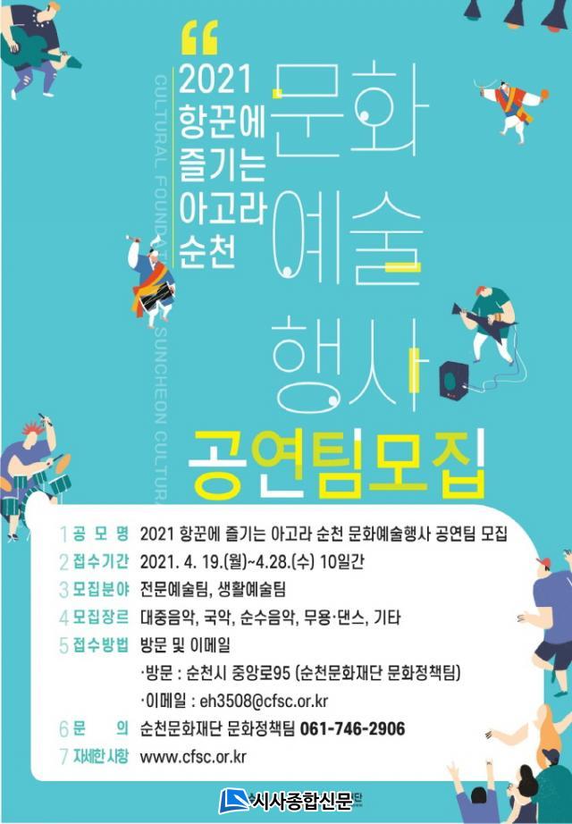 [½Ã»çÁ¾ÇսŹ® = Àå¹Î±Ô ±âÀÚ] ¼øÃµ¹®ÈÀç´Ü(ÀÌ»çÀå Çã¼®)Àº Áö¿ª ¹®È¿¹¼úÀεéÀÇ È°µ¿±â¹Ý °È¿Í ½Ã¹Î ¹®È ÇâÀ¯±âȸ È®´ë¸¦ À§ÇÑ ¡®2021 Çײۿ¡ Áñ±â´Â ¾Æ°í¶ó ¼øÃµ¡¯°ø¿¬ÆÀÀ» 4¿ù 28ÀϱîÁö °ø°³ ¸ðÁýÇÑ´Ù.