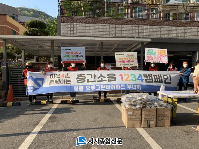 ¡®1.ÀÌ¿ô°ú ¹Ý°©°Ô ÀλçÇϱâ, 2.½½¸®ÆÛ Âø¿ëÀ¸·Î Ãþ°£¼ÒÀ½ ÁÙÀ̱â, 3.¼ÒÀ½¹æÁö ¸ÅÆ® »ç¿ëÇϱâ, 4.È¥ÀÚ°¡ ¾Æ´Ñ ÇÔ²²ÀÔ´Ï´Ù¡¯ Àǹ̸¦ ´ãÀº Ãþ°£¼ÒÀ½ 1234 Ä·ÆäÀÎÀº 100¿©¸íÀÇ ÁÖ¹ÎÀÌ Âü¿©ÇØ Ãþ°£¼ÒÀ½ ¹æÁö Âü¿©¿¡ ¼¾àÇß´Ù. ¶ÇÇÑ ¼ÒÀ½¹æÁö ½½¸®ÆÛ¸¦ »ç¿ëÇÒ ¼ö ÀÖµµ·Ï µ¶·ÁÇß´Ù.