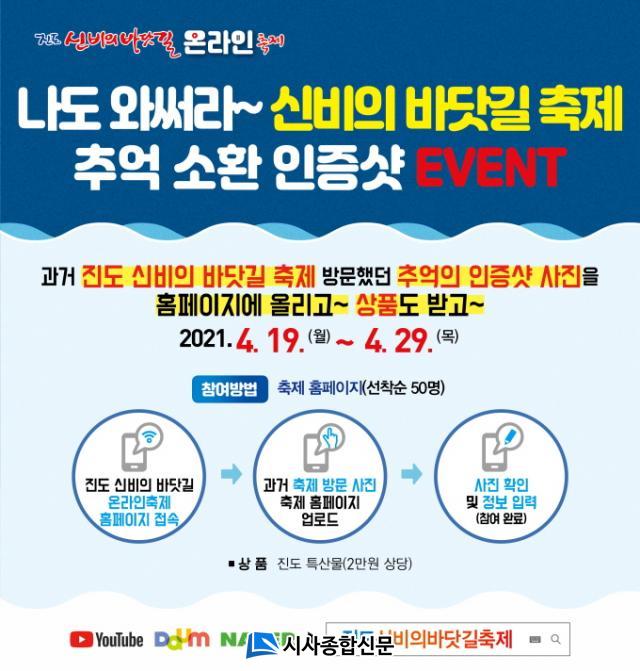 ¸ÕÀú ¡®³ªµµ ¿Í½á¶ó~½ÅºñÀÇ ¹Ù´å±æ ÃàÁ¦ Ãß¾ï ¼Òȯ ÀÎÁõ¼¦¡¯ À̺¥Æ®¸¦ ÅëÇØ °ú°Å Áøµµ ½ÅºñÀÇ ¹Ù´å±æ ÃàÁ¦¸¦ ¹æ¹®Çß´ø Ãß¾ïÀÇ ÀÎÁõ¼¦ »çÁøÀ» Áøµµ ½ÅºñÀÇ ¹Ù´å±æ ÃàÁ¦ ȨÆäÀÌÁö¿¡ ¿Ã¸®¸é ¼±Âø¼ø 50¸í¿¡°Ô 2¸¸¿ø »ó´çÀÇ Áøµµ Ư»êǰÀ» Á¦°øÇÑ´Ù.