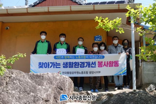 [½Ã»çÁ¾ÇսŹ® = Àå¹Î±Ô ±âÀÚ] Àü±¹ÅëÇÕ°ø¹«¿ø³ëÁ¶ ±¤¾ç½ÃÁöºÎ´Â Áö³ 24ÀÏ Á¶ÇÕ¿ø 8¸íÀÌ Âü¿©ÇÑ °¡¿îµ¥ Áø¿ù¸é °ÅÁÖ È¦¸ö¾î¸£½Å °¡±¸¸¦ ´ë»óÀ¸·Î µµ¹èÀåÆÇ ±³Ã¼, ´ëû¼Ò, »ýȰ¿ëǰ(¼¼Á¦, ÀÇ·ù) Áö¿ø µî ºÀ»çȰµ¿À» ÆîÃÆ´Ù.