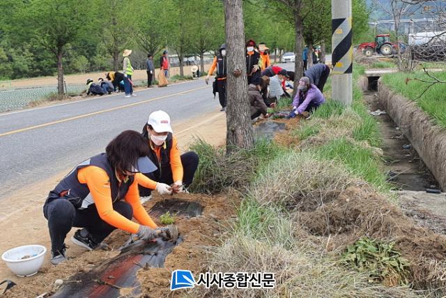 ¡°²É±æ Á¶¼º»ç¾÷¡±Àº ¾È¼º¸éÀ» ¹æ¹®ÇÏ´Â ³»¹æ°´¿¡°Ô Ȱ±âÂ÷°í È»çÇÑ Áö¿ª À̹ÌÁö¸¦ ¼±»çÇϰí Äڷγª·Î ÁöÄ£ Áֹε鿡°Ô Ȱ·ÂÀ» ½É¾îÁشٴ ÃëÁö¿¡¼ ÁøÇàµÈ °ÍÀ¸·Î, ÁÖ¹ÎÀÚÄ¡À§¿øÈ¸¿Í ºÎ³àȸ, »ýȰ°³¼±È¸, Áö¿ª»çȸº¸ÀåÇùÀÇü, ÀÚÀ²¹æ¹ü´ë, Çѱ¹¿©¼º³ó¾÷ÀÎȸ, ¿©ÀÚÀÇ¿ë¼Ò¹æ´ë, ¹ßÀüÀåÇÐÀç´Ü µî 8°³ Áö¿ª»çȸ´Üü ȸ¿ø µî 1¹é¿© ¸íÀÌ ÇÔ²²Çß´Ù.