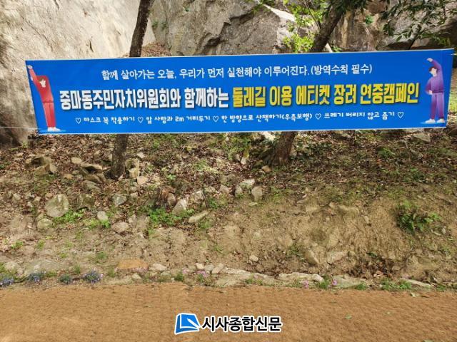 | ±¤¾ç½Ã Á߸¶µ¿ ÁÖ¹ÎÀÚÄ¡À§¿øÈ¸, µÑ·¹±æ ÀÌ¿ë ¿¡Æ¼ÄÏ Àå·Á Ä·ÆäÀÎ ²Éµ¿»ê µÑ·¹±æ ÀÌ¿ë ½Ã Äڷγª19 ¿¹¹æ¼öÄ¢ È«º¸È°µ¿ ½Ç½Ã