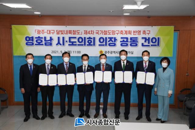 ½ÃµµÀÇȸ ÀÇÀåµéÀº °ÇÀǹ®¿¡¼ ¡°¿µÈ£³² ½Ãµµ¹ÎÀÌ ¿°¿øÇÏ´Â ´Þºû³»·úöµµ »ç¾÷ÀÌ Á¦4Â÷ ±¹°¡Ã¶µµ¸Á ±¸Ãà°èȹ¾È¿¡ ºüÁø °Í¿¡ ´ëÇØ Ãæ°Ý°ú ½Ç¸ÁÀ» ±ÝÇÒ ¼ö ¾ø´Ù¡±°í ¿ì·Á¸¦ ³ªÅ¸³»¸ç, ¡°±¤ÁÖ-´ë±¸¸¦ 1½Ã°£´ë·Î ¿¬°áÇÏ´Â ´Þºû³»·úöµµ»ç¾÷Àº µ¿¼ÈÇÕ, ÁøÁ¤ÇÑ ±¹¹ÎÅëÇÕ°ú Áö¿ª¹ßÀüÀ» À§ÇØ ¹Ýµå½Ã ÇÊ¿äÇÑ »ç¾÷¡±À̶ó°í °Á¶Çß´Ù.