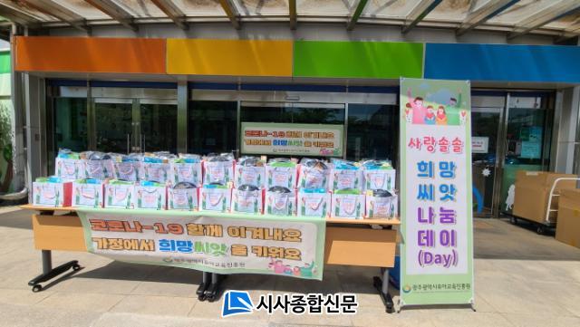 ±¤ÁÖÀ¯¾Æ±³À°ÁøÈï¿øÀº Áö³ 4¿ù26~30ÀÏ ¡®Èñ¸Á¾¾¾Ñ ³ª´®µ¥ÀÌ(day)¡¯ÀÇ »çÀü ½ÅûÀ» ¹Þ¾Ò´Ù. ¼±Á¤µÈ Çкθð 200¸í¿¡°Ô Äᳪ¹° ±â¸£±â Àç·á¿Í ¾¾¾Ñ ¿¬ÇÊ, »ó»ó³ª¹«·Î ±¸¼ºµÈ ¡®Èñ¸Á¾¾¾Ñ ²Ù·¯¹Ì¡¯¸¦ À¯¾Æ±³À°ÁøÈï¿øÀÇ µå¶óÀÌºê ½º·ç Á¸¿¡¼ Àü´ÞÇÑ´Ù.