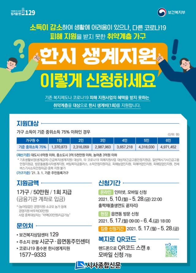 ´ë»óÀÚ ¼±Á¤Àº 6¿ù¸»±îÁö ¼Òµæ, Àç»ê, ¼Òµæ °¨¼Ò µîÀÇ È®ÀÎ Á¶»ç¸¦ °ÅÃÄ Å¸ Áö¿ø»ç¾÷ ¼ö±Þ ¿©ºÎ È®ÀÎ ÈÄ ÃÖÁ¾ °áÁ¤ÇÒ ¿¹Á¤À̸ç, Áö¿ø±ÝÀº 1ȸ¿¡ ÇÑÇØ °¡±¸´ç 50¸¸¿øÀ» ½ÅûÇÑ °èÁ·ΠÇö±ÝÁö±ÞÇÑ´Ù.