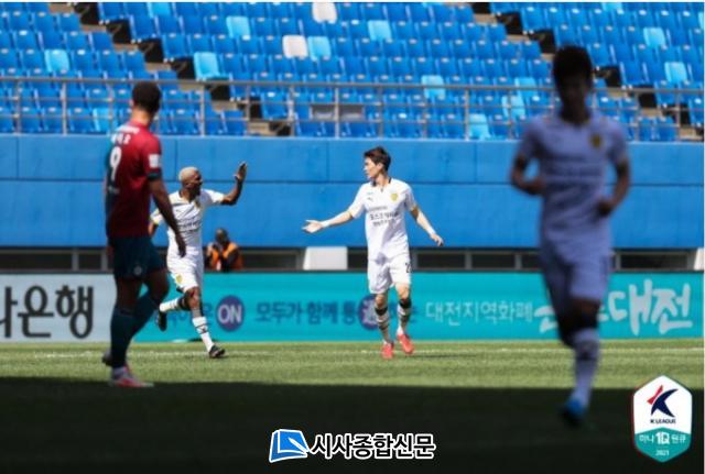 ¼±Á¦°ñÀº ȨÆÀ ´ëÀüÀÌ ±â·ÏÇß´Ù. Àü¹Ý 17ºÐ GK ±è´Ù¼ÖÀÇ Ä³Äª ½Ç¼ö·Î ³ª¿Â ´ëÀüÀÇ ÄÚ³Êű »óȲ¿¡¼ GK ±è´Ù¼ÖÀÌ ÆÝĪÇÑ º¼À» ´ëÀü ÀÌÁ¾Çö°ú ¹ÙÀÌ¿À°¡ ¸Ó¸®·Î ¿¬°áÇÏ¿© °ñ¹® ¾Õ¿¡ ÀÖ´ø ¹ÚÁø¼·ÀÌ Ä§ÂøÇÏ°Ô µæÁ¡À¸·Î ¿¬°áÇß´Ù.