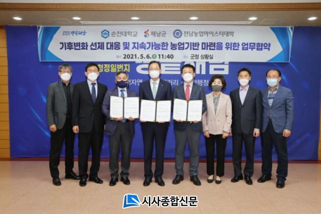 6ÀÏ ÇØ³²±ºÃ» »óȲ½Ç¿¡¼ ÁøÇàµÈ ¾÷¹« Çù¾à½Ä¿¡´Â ¸íÇö°ü ÇØ³²±º¼ö, ¼øÃµ´ëÇб³ ½Åµ¿¿ø »ý¸í»ê¾÷°úÇдëÇÐÀå, À̱â¿õ ¼øÃµ´ë ¸í¿¹±³¼ö, ¼Û°æÈ¯ Àü³²³ó¾÷¸¶À̽ºÅÍ´ëÇÐÀåÀÌ Âü¼®ÇØ ±âÈĺ¯È ´ëÀÀ ³ó¾÷¿¬±¸´ÜÁö Á¶¼º µî ³ó¾÷¿ª·® °È¸¦ À§ÇÑ ÇùÁ¶Ã¼°è¸¦ ±¸ÃàÇϱâ·Î Çß´Ù.