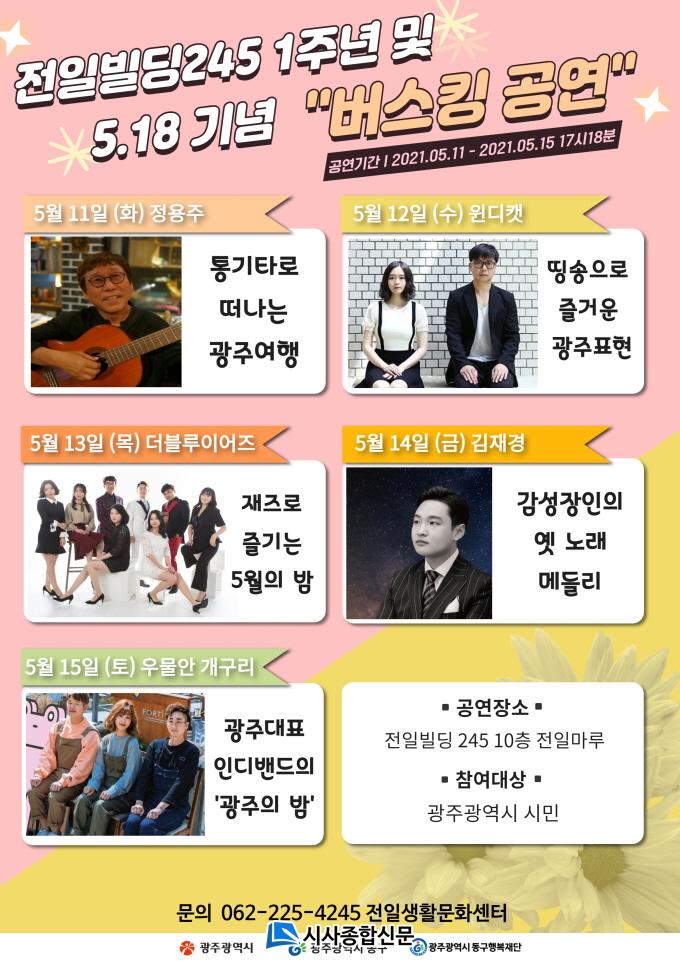 Ã⿬ÁøÀº 11ÀÏ Æ÷Å©°¡¼ö Á¤¿ëÁÖ, 12ÀÏ Áö¿ª Àεð¹êµå À©µðÄÏ, 13ÀÏ Ç»ÀüÀçÁî¹êµå ´õºí·çÀ̾îÁî, 14ÀÏ °íÀü°¡¿ä Àü¹®°¡¼ö ±èÀç°æ, 15ÀÏ Àεð¹êµå ¿ì¹°¾È°³±¸¸® µîÀÌ Ãâ¿¬ÇØ ¼øÂ÷ÀûÀ¸·Î ¹ö½ºÅ· °ø¿¬À» ÁøÇàÇÑ´Ù.