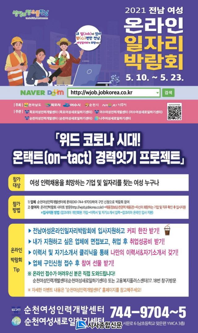 | ¼øÃµ½Ã, ¿Â¶óÀÎ ¿©¼ºÀÏÀÚ¸®¹Ú¶÷ȸ °³ÃÖ 5¿ù 23ÀϱîÁö, ¸éÁ¢ ÄÁ¼³ÆÃ µî ´Ù¾çÇÑ Ãë¾÷Áö¿ø ¼ºñ½º Á¦°ø