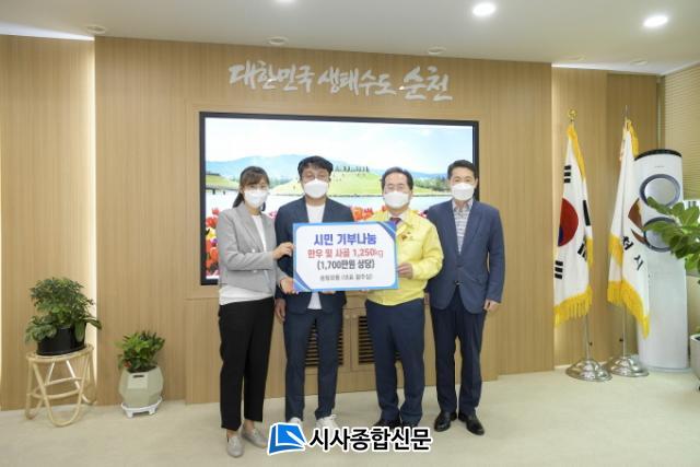 [½Ã»çÁ¾ÇսŹ® = Àå¹Î±Ô ±âÀÚ] ¼øÃµ ¼Û¸²À¯Åë(´ëÇ¥ ȲÁÖ¼º)ÀÌ Áö³ 10ÀÏ »çȸ ȯ¿øÀ» ½ÇõÇϱâ À§ÇØ 1700¸¸¿ø »ó´çÀÇ ÇÑ¿ì ¹× »ç°ñ 1,250kgÀ» ¼øÃµ½Ã¿¡ ±âŹÇß´Ù.
