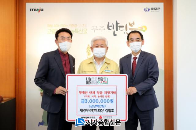Áö³ 14ÀÏ¿¡´Â Àç°æ¹«ÁÖÇâ¿ìȸ ±èöȣ ȸÀåÀÌ ÀÌ¿ôµ½±â¿¡ ½á ´Þ¶ó¸ç ¹«ÁÖ±º¿¡ 3¹é¸¸ ¿øÀ» ±âŹÇßÀ¸¸ç ¹«ÁÖ±º ¼³Ãµ¸é ¼¸²¿¬°¡(Ææ¼Ç) ±è°æÀÚ ´ëÇ¥´Â (Àç)¹«ÁÖ±º±³À°¹ßÀüÀåÇÐÀç´Ü¿¡ 3¹é¸¸ ¿øÀ» Àü´ÞÇß´Ù.