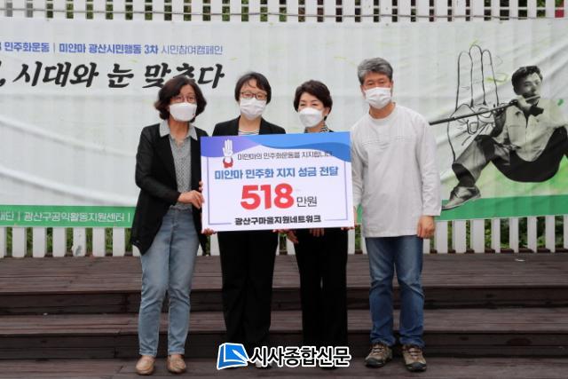ƯÈ÷, ¹Ì¾á¸¶ ½Ã¹ÎµéÀÇ ¹ÎÁÖÁÖÀÇ ÅõÀïÀ» ÁöÁöÇϱâ À§ÇÑ ½Ã°£µµ ¸¶·ÃÇß´Ù. ±¤»ê±¸ Áß°£Áö¿øÁ¶Á÷µéÀÌ ¹Ì¾á¸¶ ½Ã¹ÎµéÀ» Áö¿øÇϱâ À§ÇÑ ¼º±ÝÀ» Àü´ÞÇß°í, ¹Ì¾á¸¶ Ãâ½Å Ȱµ¿°¡°¡ ¿¬´ë¹ß¾ðÀ» ÁøÇàÇß´Ù.