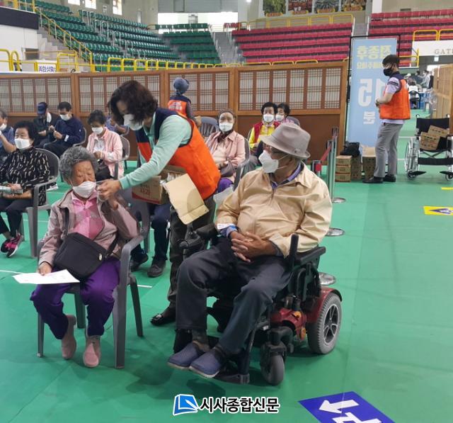 [½Ã»çÁ¾ÇսŹ® = ¿À½ÂÅà ±âÀÚ] Áøµµ±º ÁøµµÀ¾ ÁÖ¹ÎÀÚġȸ°¡ Áøµµ½Ç³»Ã¼À°°ü¿¡ ±¸ÃàµÈ Äڷγª19 ¿¹¹æÁ¢Á¾¼¾Å͸¦ ¹æ¹®ÇØ ÃÖ±Ù ÀÚ¿øºÀ»çȰµ¿À» ½Ç½ÃÇß´Ù.