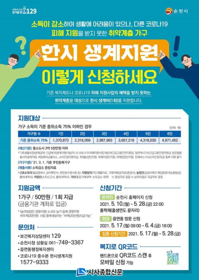 Çѽà »ý°èÁö¿ø ½ÅûÀº 2021³â 3¿ù 1ÀÏ Áֹεî·Ï ±âÁØ ¿ÃÇØ 1~5¿ù ¼ÒµæÀÌ 2019³â ¶Ç´Â 2020³âº¸´Ù °¨¼ÒÇÑ °¡±¸·Î ´Ù¸¥ Äڷγª19 ÇÇÇØ Áö¿ø±ÝÀ» ¹ÞÁö ¸øÇÑ ±âÁØÁßÀ§¼Òµæ 75%ÀÌÇÏ(4Àΰ¡±¸ 3,657õ¿ø), Àç»ê 3¾ï 5õ¸¸¿ø ÀÌÇÏÀÇ °¡±¸°¡ Áö¿ø´ë»óÀÌ´Ù.