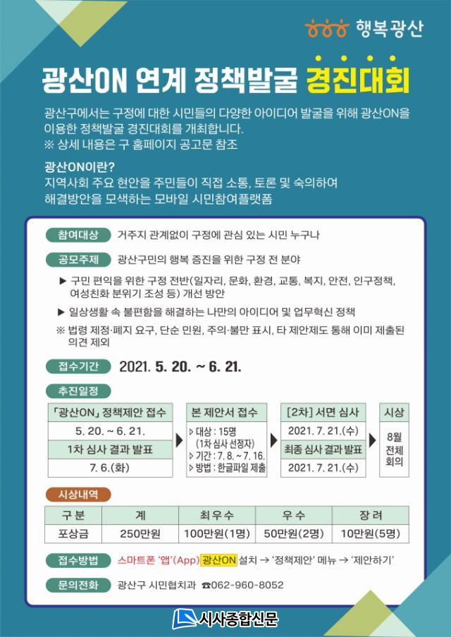 ±¤»ê±¸¿¡ µû¸£¸é, À̹ø °æÁø´ëȸ´Â ±¤»êONÀÇ Á¤Ã¥Á¦¾È Äڳʸ¦ ÅëÇØ ±¸Á¤ Àü ºÐ¾ß¸¦ ´ë»óÀ¸·Î ÁÖ¹ÎÀÇ ÇູÁõÁøÀ» À§ÇÑ Á¤Ã¥ ¾ÆÀ̵ð¾î¸¦ °ø¸ðÇÑ´Ù.