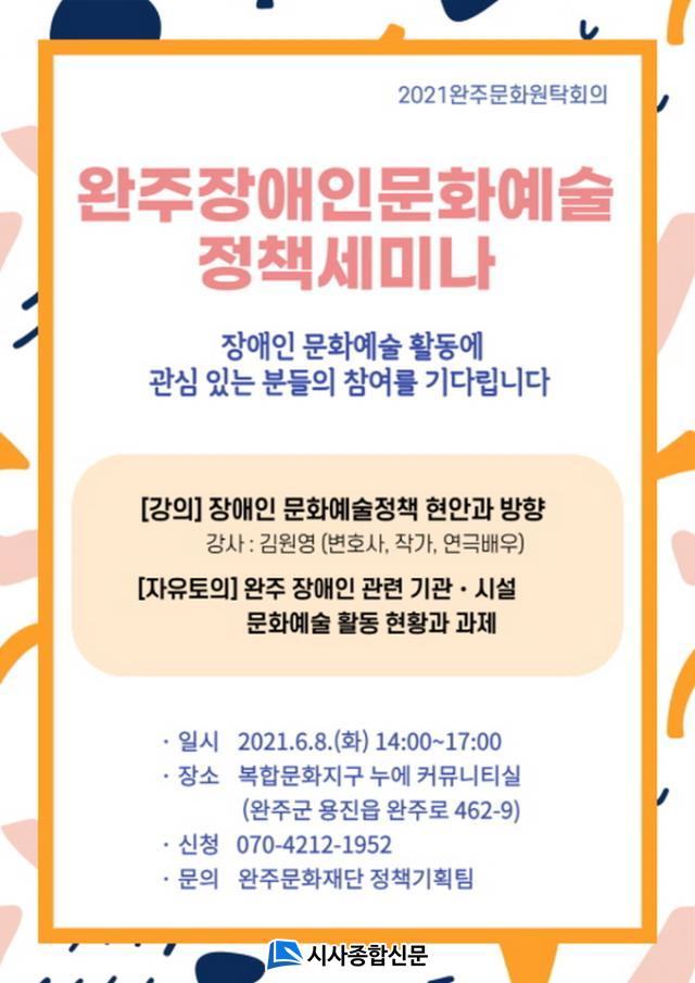 Á¤Ã¥¼¼¹Ì³ª¿¡¼´Â ¡®Àå¾ÖÀι®È¿¹¼úÁ¤Ã¥ Çö¾È°ú ¹æÇâ¿¡ °üÇÑ °ÀÇ¡¯¿Í ¡®¿ÏÁÖ Àå¾ÖÀÎÀÇ ¹®È¿¹¼úȰµ¿ ÇöȲ°ú °úÁ¦¿¡ ´ëÇÑ ÅäÀÇ¡¯°¡ ÁøÇàµÉ °èȹÀÌ´Ù. °ÀÇ´Â Àå¾ÖÀÎ ´ç»çÀڷμ ¿¬±Ø¹è¿ì¿Í ÀÛ°¡·Î Ȱµ¿Çϰí ÀÖ´Â º¯È£»ç ±è¿ø¿µ ÀÌ´Ù.