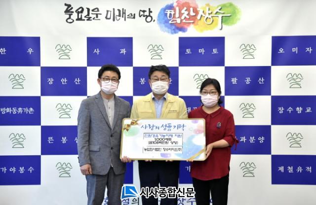 [½Ã»çÁ¾ÇսŹ® = ¿À½ÂÅà ±âÀÚ] Àå¼ö±º Àå¼öÀ¾ ¼ÒÀç ģȯ°æ º´ÇØÃæÀÚÀç »ý»ê Àü¹®±â¾÷ÀÎ ³ó¾÷ȸ»ç¹ýÀÎ Àå¼ö¹ÙÀÌ¿À(ÁÖ)(´ëÇ¥ ¹Ú¼º¼÷)´Â 4ÀÏ Ä£È¯°æÀ¯±â³óÀÚÀç 1,000¼¼Æ®(105¸¸¿ø »ó´ç)¸¦ Àå¼ö±º¿¡ ±âŹÇß´Ù.