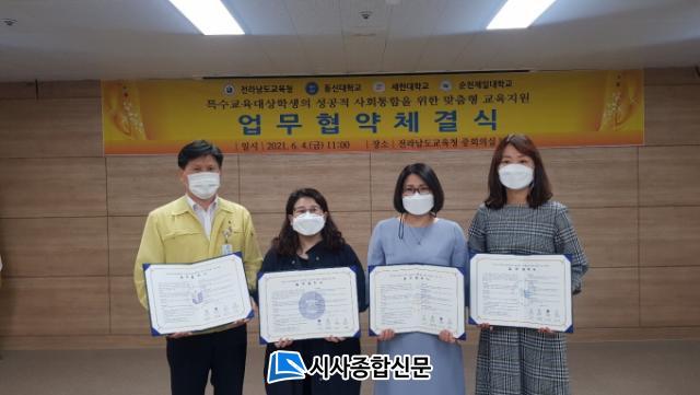 ¹Ú°æÈñ Àü³²±³À°Ã» ÁߵÀ°°úÀåÀº ¡°Æ¯¼ö±³À°´ë»óÇлýÀÇ ±³À°È°µ¿°ú ¾ð¾îÀçȰÀ» À§ÇØ Çù·ÂÇØÁØ ´ëÇп¡ °¨»çÇÏ´Ù¸ç, Ư¼ö±³À°´ë»óÇлýÀÇ ¼º°øÀûÀÎ »çȸÅëÇÕ°ú Áö¿ª»çȸ ³» Áö¼Ó°¡´ÉÇÑ Æ¯¼ö±³À° Áö¿øÃ¼°è ±¸ÃàÀ» À§ÇØ ´ëÇаú ¿¬´ë¡¤Çù·ÂÀ» ¾Æ³¢Áö ¾Ê°Ú´Ù.¡±°í ¸»Çß´Ù.