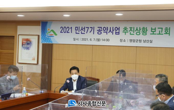 À̳¯ º¸°íȸ´Â ¹Î¼±7±â °ø¾à»ç¾÷(7°³ºÐ¾ß, 58°³ ¼¼ºÎ»ç¾÷) ÀÌÇàÇöȲÀ» Á¡°ËÇÏ°í ¹× À̸¦ ÃßÁøÇϰí ÀÖ´Â °øÁ÷ÀÚµéÀ» °Ý·ÁÇÏ¸ç ±º¹Î°úÀÇ ¼ÒÁßÇÑ ¾à¼ÓÀÎ °ø¾à»ç¾÷ 100% ´Þ¼ºÀ» À§ÇÑ ÃÑ·Â °æÁÖ¸¦ ´çºÎÇϱâ À§ÇØ ¸¶·ÃÇÏ¿´´Ù.
