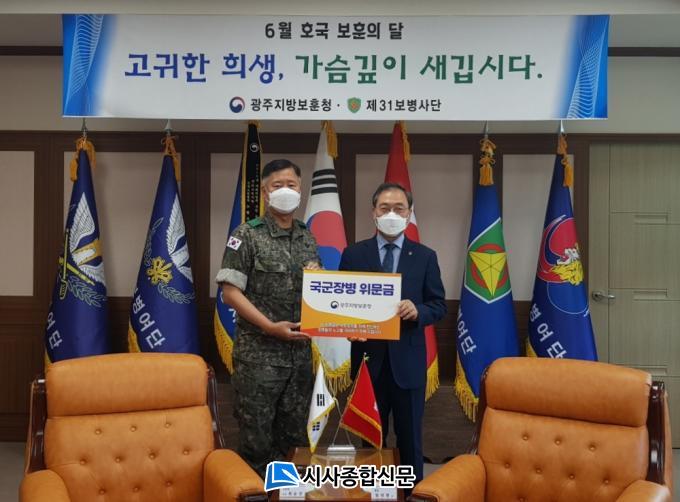 [½Ã»çÁ¾ÇսŹ® = ¿À½ÂÅà ±âÀÚ] ±¤ÁÖÁö¹æº¸ÈÆÃ»(ûÀå ÀÓ¼ºÇö)Àº 9ÀÏ 6¿ù È£±¹º¸ÈÆÀÇ ´ÞÀ» ¸Â¾Æ À°±º Á¦31º¸º´»ç´ÜÀ» ¹æ¹®ÇØ ±º À庴µéÀ» °Ý·ÁÇϰí À§¹®±ÝÀ» Àü´ÞÇß´Ù.