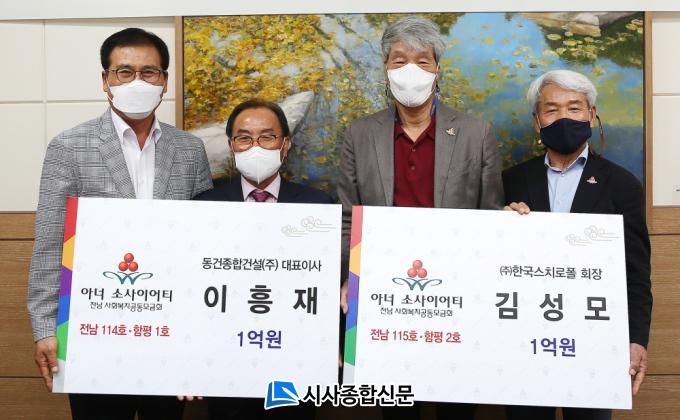 µ¿°ÇÁ¾ÇհǼ³(ÁÖ) ÀÌÈïÀç ´ëÇ¥ÀÌ»ç¿Í ¢ßÇѱ¹½ºÄ¡·ÎÆú ±è¼º¸ð ´ëÇ¥À̻簡 ±× ÁÖÀΰø. ÇÔÆò±º ¼ÕºÒ¸é Ãâ½Å ±â¾÷°¡À̸ç Á׸¶°í¿ìÀÎ ÀÌ ´ëÇ¥¿Í ±è ´ëÇ¥´Â Áö³ 5¿ù 12Àϰú 17ÀÏ, Àü³²»çȸº¹Áö°øµ¿¸ð±Ýȸ¸¦ ã¾Æ ÇÔÆò±º µ¹º½ÀÌ¿ô º¹Áö»ç¾÷ºñ·Î °¢°¢ 5³â°£ 1¾ï ¿ø ±âºÎ¸¦ ¾àÁ¤ÇÏ¸é¼ ¾Æ³Ê ¼Ò»çÀÌ¾îÆ¼ ÇÔÆò1È£, ÇÔÆò2È£ ȸ¿øÀ¸·Î À̸§À» ¿Ã·È´Ù.