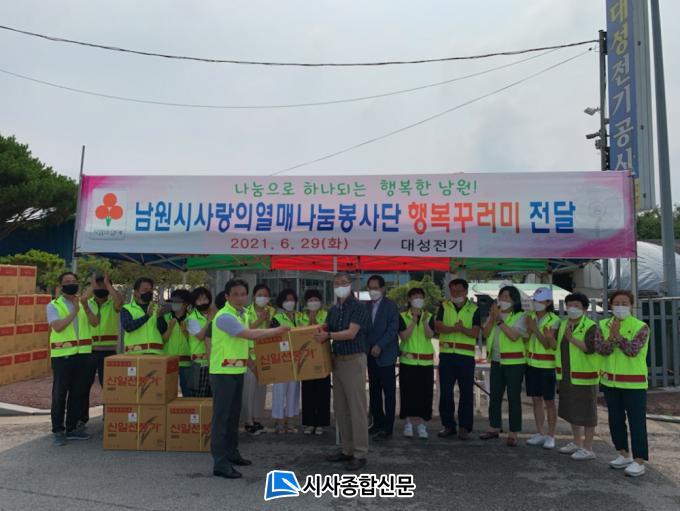 [½Ã»çÁ¾ÇսŹ® = ¿À½ÂÅà ±âÀÚ] ³²¿ø½Ã »ç¶ûÀÇ ¿¸Å ºÀ»ç´Ü(´ÜÀå:°í¸íö)Àº 6¿ù 29ÀÏ º¹Áö»ç°¢Áö´ë¿¡ ÀÖ´Â Àú¼Òµæ°¡±¸¿Í ³²¿ø½Ã º¸ÈÆ´Üü 8°³¼Ò »ýȰÀÌ ¾î·Á¿î ȸ¿øµéÀÇ °Ç°ÇÑ ¿©¸§³ª±â¸¦ À§ÇØ »ç¶û°ú Á¤¼ºÀÌ µë»Ò ´ã±ä Çູ¼±Ç³±â 204´ë¸¦ Àü´ÞÇÏ¿´´Ù.