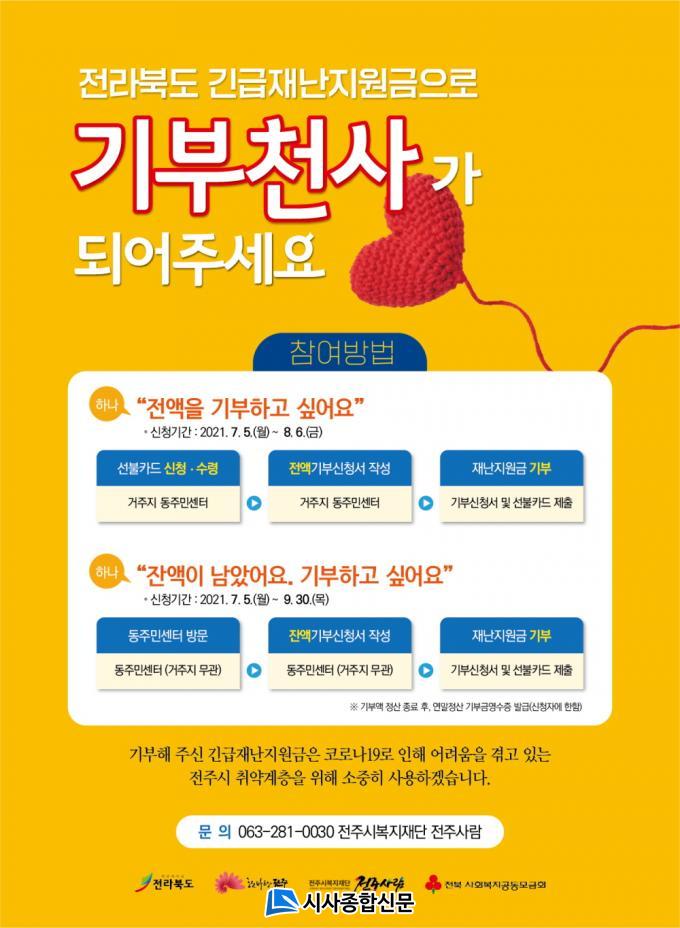 ÀüºÏµµ°¡ ±ä±ÞÀç³Áö¿ø±ÝÀ» ¾î·Á¿î ÀÌ¿ôÀ» À§ÇØ ±âºÎÇÒ ¼ö ÀÖµµ·Ï ÇÑ °¡¿îµ¥ ÀüÁֽð¡ ±âºÎó·Î ÀüÁֽú¹ÁöÀç´Ü ¡®ÀüÁÖ»ç¶÷¡¯À» Á¤ÇÑ µ¥ µû¸¥ °ÍÀÌ´Ù.