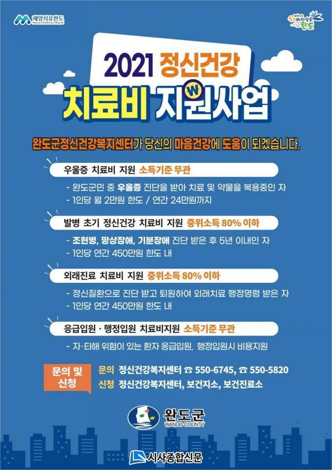 ÇÑÆí, Á¤½Å Áúȯ ÀÇ·áºñ Áö¿ø°ú °ü·ÃµÈ »çÇ×Àº ¿Ïµµ±ºÁ¤½Å°Ç°º¹Áö¼¾ÅÍ(¢Ï550-6745, 550-5820)¿¡ ¹®ÀÇÇÏ¸é ¾È³»¹ÞÀ» ¼ö ÀÖ´Ù.
