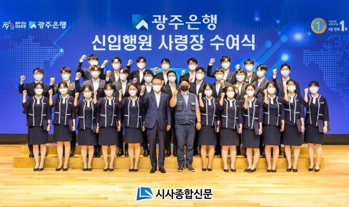 ¼ÛÁ¾¿í ±¤ÁÖÀºÇàÀåÀº ÁøÁ¤ÇÑ ÀºÇà¿øÀ¸·Î °Åµì³ª±â À§ÇÑ ±ä ¿©Á¤¿¡ ¼º½ÇÈ÷ ÀÓÇÑ ½ÅÀÔÇà¿øµéÀ» °Ý·ÁÇϸç ÇѸí ÇÑ¸í¿¡°Ô ÈÖÀåÀ» ´Þ¾ÆÁÖ¾ú´Ù.