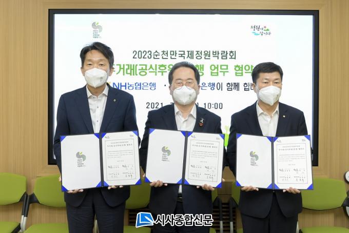 À̳¯ Çù¾à½Ä¿¡¼ Çã¼® ÀÌ»çÀåÀº ¡°2023¼øÃµ¸¸±¹Á¦Á¤¿ø¹Ú¶÷ȸ ¼º°øÀû °³ÃÖ¸¦ À§ÇØ ÈÄ¿øÇØ ÁֽŠNH³óÇùÀºÇà°ú ±¤ÁÖÀºÇà¿¡ °¨»çµå¸°´Ù.¡±¸ç ¡°¼øÃµ¸¸ º¸ÀüÀÇ °¡Ä¡¿¡¼ Ãâ¹ßÇÑ Á¤¿ø¹Ú¶÷ȸ¸¦ 10³â ¸¸¿¡ ´Ù½Ã °³ÃÖÇÏ¿© Á¤¿øµµ½Ã·Î¼ ¼øÃµÀÇ ¹Ì·¡¸¦ ÁغñÇϰí ÀÖ´Ù. ³²Àº Áغñ±â°£ µ¿¾È ¸¹Àº Áö¿ø°ú ÇùÁ¶¸¦ ºÎʵ台´Ù.¡±°í ¸»Çß´Ù.