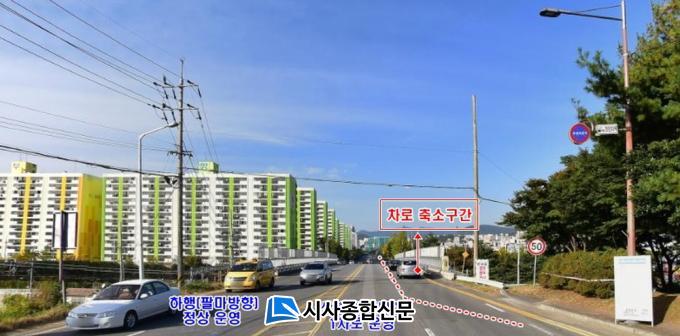 ÀÌ¿¡ µû¶ó ¿À´Â 7¿ù 15ÀϺÎÅÍ 2022³â 3¿ù 31ÀϱîÁö ¿Õº¹ 4Â÷·Î°¡ 3Â÷·Î·Î Ãà¼Ò ¿î¿µµÈ´Ù. 1Â÷·Î·Î Ãà¼Ò ¿îÇàµÉ ±¸°£Àº ÆÈ¸¶Ã¼À°°ü¿¡¼ Á¶·ÊÁöÇÏÂ÷µµ ¹æÇâ 280m ±¸°£ÀÌ´Ù.