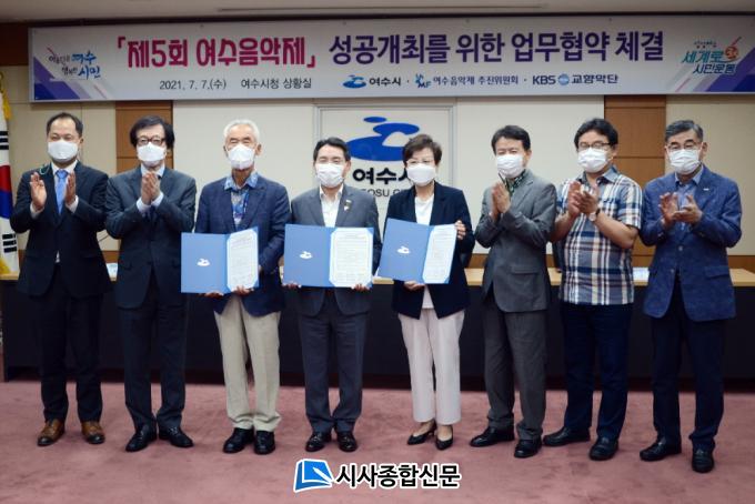 ¿©¼ö½Ã¿¡ µû¸£¸é 7ÀÏ ¿ÀÈÄ ½Ãû »óȲ½Ç¿¡¼ Á¦5ȸ ¿©¼öÀ½¾ÇÁ¦ ¾÷¹«Çù¾à½ÄÀÌ ¿·È´Ù. Çù¾à½Ä¿¡´Â ±Ç¿ÀºÀ ¿©¼ö½ÃÀå, ¿©¼öÀ½¾ÇÁ¦ ÃßÁøÀ§¿øÈ¸ ¹Ú¿ëÇÏ À§¿øÀå, KBS ±³Çâ¾Ç´Ü ¹ÚÁ¤¿Á »çÀå, GSĮŨ½º ¿¹¿ï¸¶·ç À̽ÂÇÊ ´ëÇ¥ µîÀÌ Âü¼®Çß´Ù.