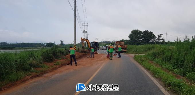 Áö³ 7¿ù 9ÀÏ ½ÃÁ¾¸é ¹æÀç´Ü¿ø 20¸íÀÌ Æ÷Å©·¹ÀÎ, ´ýÇÁÆ®·° µî Àåºñ¸¦ µ¿¿øÇÏ¿© ³»µ¿¸®, ºÀ¼Ò¸®, ±¸»ê¸® µî Áö¹æµµ, ±ºµµ¿¡ ½×¿©ÀÖ´Â À¯½ÇµÈ Åä»ç¸¦ Á¦°ÅÇϰí Á¤ºñÇÔÀ¸·Î½á ¿øÈ°ÇÑ µµ·Î ¼ÒÅë°ú ¾ÈÀü»ç°í ¿¹¹æÀ» À§ÇØ ³ë·ÂÇÏ¿´´Ù.