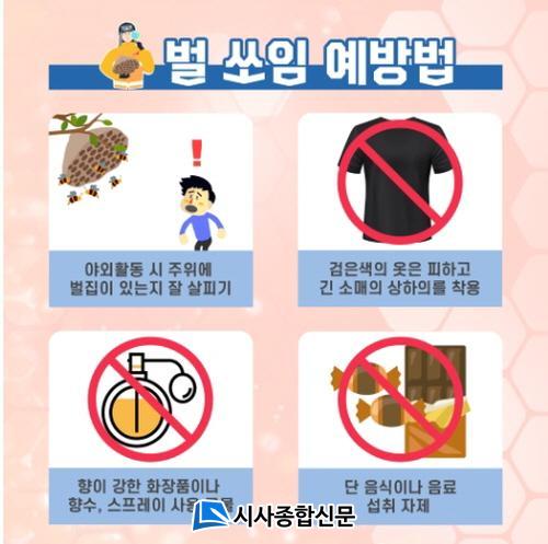 ¹ú ½îÀÓ ÇÇÇØ ¿¹¹æÀ» À§Çؼ´Â ¹úÀ» ÀÚ±ØÇÏ´Â ÈÀåǰ, Çâ¼ö »ç¿ëÀ» ÀÚÁ¦Çϰí, °ËÀº»ö °è¿ÀÇ ¿Êº¸´Ù´Â ¹àÀº»ö °è¿ÀÇ ¿Ê°ú ¸ðÀÚ¸¦ Âø¿ëÇϰí ,¹«¾ùº¸´Ù ¹úÁý °¡±îÀÌ¿¡ Á¢±ÙÇÏÁö ¸»¾Æ¾ß ÇÑ´Ù.