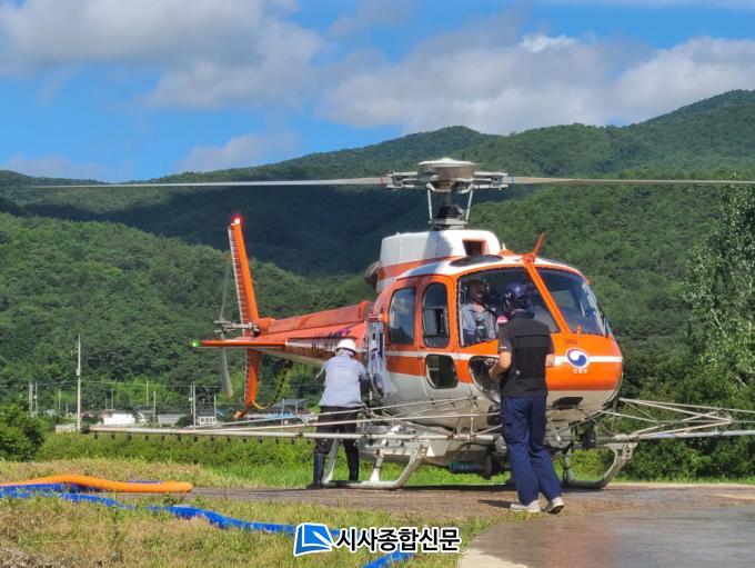 ±ºÀº ¹é¾Æ¸é°ú »çÆò¸é ÀÏ´ë 87.7ha¿¡ °ñ°í·ç ÃæºÐÇÑ ¾çÀÌ »ìÆ÷µÇµµ·Ï ¹ã³ª¹«·ÎºÎÅÍ 15~20m »ó°ø¿¡¼ ¹æÁ¦¸¦ ÁøÇàÇß´Ù. ÁÖº¯ ģȯ°æ Àç¹èÁö¿¡ ¿µÇâÀÌ ¾øµµ·Ï ¾àÁ¦´Â À¯±â³ó¾÷ ÀÚÀç·Î °ø½ÃµÈ Á¦Ç°À» »ç¿ëÇß´Ù.