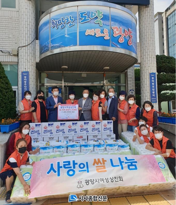 ¿©¼º»ó°øÀÎ 27¸íÀ¸·Î ±¸¼ºµÈ ±¤¾ç½Ã¿©¼º»óģȸ´Â Áö¿ª»çȸ ³ª´®À» ½ÇõÇϰíÀÚ È¸¿øµéÀÌ ¸Å¿ù 1¸¸ ¿ø¾¿ ȸºñ¸¦ Àû¸³ÇØ ÇØ´ç ÈÄ¿ø¹°Ç°À» ¸¶·ÃÇß´Ù.