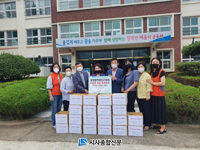 ±¤¾ç½Ã´Â ¿©¼ºÄ£Èµµ½Ã Á¶¼º»ç¾÷ÀÇ ÀÏȯÀ¸·Î ±¤¾ç¿©ÀÚÁßÇб³¿¡ ºñ»ó¿ë »ý¸®´ë À򮂱â 3´ë¸¦ ¼³Ä¡ÇßÀ¸¸ç, ±¤¾çµ¿¹é·ÎŸ¸®Å¬·´Àº 200¸¸ ¿ø »ó´çÀÇ ¿©¼º À§»ý¿ëǰ 20¹Ú½º¸¦ ÈÄ¿øÇß´Ù.