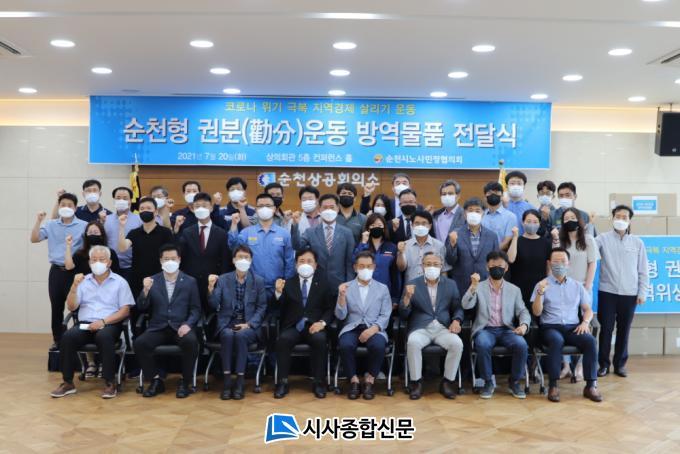 ¼øÃµ½Ã ³ë»ç¹ÎÁ¤ÇùÀÇȸ°¡ °³ÃÖÇÑ ±Ý¹ø Çà»ç´Â Äڷγª19 ±Øº¹À» À§ÇØ ³ª´®°ú ±âºÎ ¹®È Á¶¼ºÀ» À§ÇØ ÃßÁøÇϰí ÀÖ´Â ¼øÃµÇü ±ÇºÐ(ÏèÝÂ)¿îµ¿ ÀÏȯÀ¸·Î Äڷγª19 Àå±âÈ·Î ÇÇÇØ¸¦ ÀÔÀº ±â¾÷¿¡ ´ëÇØ ¹æ¿ª¹°Ç°À» ¸Å³â ¼øÂ÷ÀûÀ¸·Î Áö¿øÇÏ¿© ±â¾÷ÀÇ °æÁ¦Àû ºÎ´ãÀ» ´ú¾îÁÖ±â À§ÇØ ¸¶·ÃÇßÀ¸¸ç, ¿ÃÇØ´Â 35°³ »ç¾÷Àå¿¡ ´ëÇØ ¼Òµ¶ ½ºÇÁ·¹ÀÌ¿Í ¼Õ¼Òµ¶Á¦ µî õ¿©¸¸¿ø »ó´çÀÇ ¹æ¿ª¹°Ç°À» Áö¿øÇß´Ù.