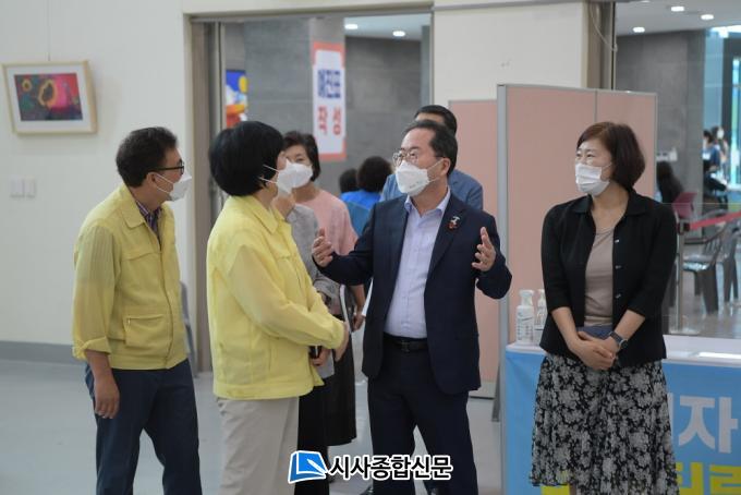 [½Ã»çÁ¾ÇսŹ® = Àå¹Î±Ô ±âÀÚ] Çã¼® ¼øÃµ½ÃÀåÀÌ 21ÀÏ °í3 ÇлýµéÀÇ Äڷγª ¹é½ÅÁ¢Á¾ ÇöÀåÀ» ±ô¦ ¹æ¹®ÇØ ¼öÇè»ýµéÀ» ÀÀ¿øÇß´Ù.
