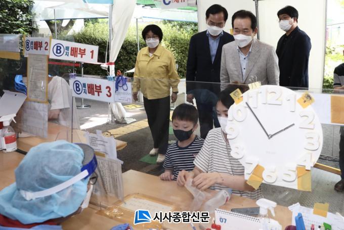 ÇÑÆí, Æø¿°Æ¯º¸°¡ ¹ßÈ¿µÈ À̳¯ Á¤¼¼±Õ Àü ÃѸ®¿Í ±è»ïÈ£ ±¤»ê±¸Ã»ÀåÀº ÇÔ²² ¾ß¿Ü¿¡ ¸¶·ÃµÈ ¼±º°Áø·á¼Ò¸¦ ã¾Æ °Ë»ç¸¦ ¹Þ±â À§ÇØ ±æ°Ô ÁÙÀ» ¼ ´ë±âÇϰí ÀÖ´Â Áö¿ª¹ÎµéÀ» À§ÇØ ¼³Ä¡µÈ Â÷¾ç¸·ÀÇ »óÅ Á¡°Ë ¹× ±¸Ã»¿¡¼ ¸¶·ÃÇÑ ¿ì»ê ¹× ¼ÕºÎä, ¾óÀ½³Ã¼ö µîÀ» ³ª´²ÁÖ¸ç À§·ÎÀÇ µû¶æÇÑ ¸»À» ÀüÇß´Ù.
