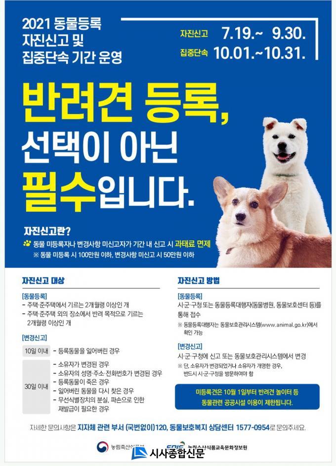 À̹ø ÀÚÁø½Å°í ±â°£ÀÌ ³¡³ª¸é ¿À´Â 10¿ùºÎÅÍ ÁýÁߴܼÓÀÌ ½Ç½ÃµÉ ¿¹Á¤À̸ç, µî·Ï´ë»ó µ¿¹°À» µî·ÏÇÏÁö ¾Ê°Å³ª µî·ÏµÈ Á¤º¸ Áß º¯°æµÈ »çÇ×À» ½Å°íÇÏÁö ¾ÊÀº °æ¿ì¿¡´Â 60¸¸¿ø ÀÌÇÏÀÇ °úÅ·ᰡ ºÎ°úµÈ´Ù.