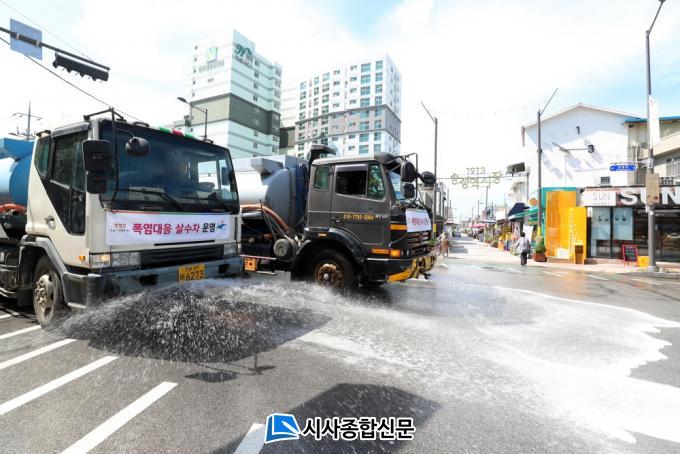 µµ½ÉÀÇ ¿±â¸¦ ½ÄÈ÷±â À§ÇØ »ì¼öÂ÷ ¿îÇ൵ ½ÃÀÛÇß´Ù. ÃÖ°í ±â¿ÂÀÌ 31µµ ÀÌ»óÀÏ °æ¿ì ÀÏ 3ȸ(¿ÀÀü 1ȸ, ¿ÀÈÄ 2ȸ) ÁÖ¿ä µµ·Î¸¦ ´ë»óÀ¸·Î »ì¼öÂ÷¸¦ ¿îÇàÇÒ °èȹÀÌ´Ù. À̿ܿ¡µµ º¸ÇàÀÚ¸¦ À§ÇÑ È¾´Üº¸µµ ±×´Ã¸· 132°³¼Ò¸¦ ¿î¿µ ÁßÀÌ´Ù.